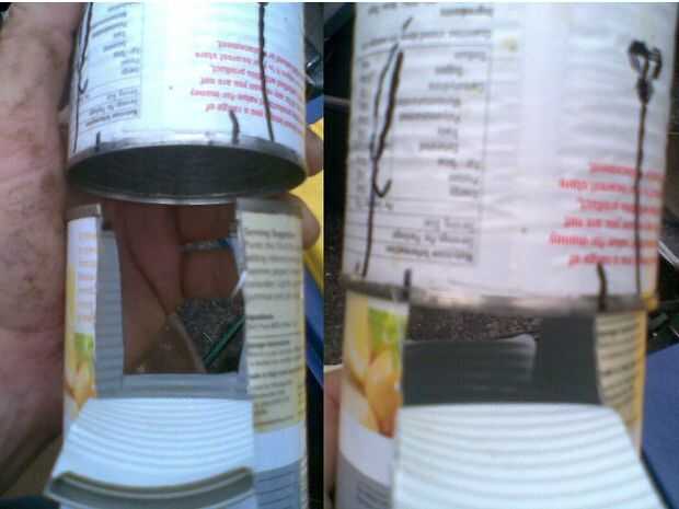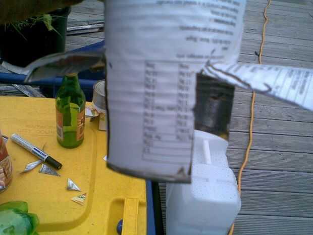 Cortar de la misma manera como lo hizo para la base - esta vez corte pelea de 2 pulgadas y doble las aletas un poco menos de noventa grados a la lata pared