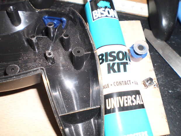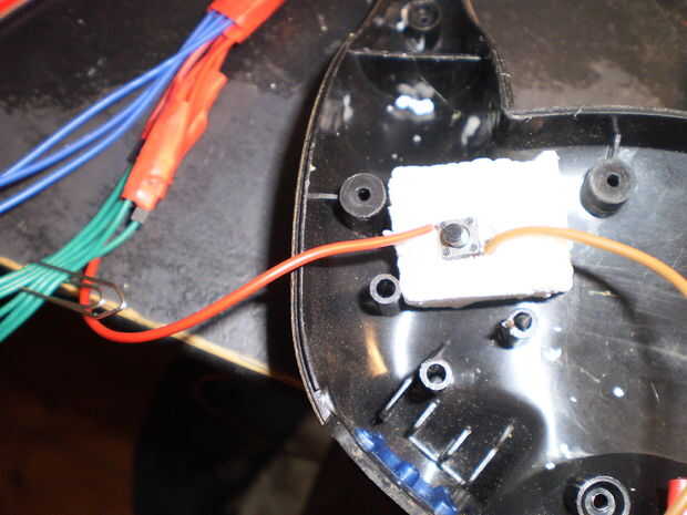 Ahora tienes que comprobar donde el pulsador debe de ser así puede ser utilizada con el caso del controlador. Tengo estos cilindros de plástico que se pega hacia fuera, pero puesto que eran demasiados tuve que cortar un trozo. Después de tener la longitud adecuada tratar de pegamento (de plástico o silicona) el pulsador para el caso. Usted puede también ponerlo en un pedazo de espuma de poliestireno como hice y poner eso en el controlador. Encontré este último método el más fácil y efectivo pero esto depende de su caso de controlador específico.