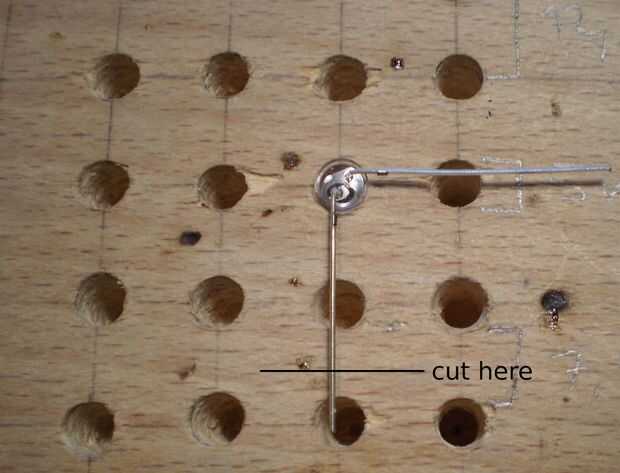 Si las piernas de tus LEDs son lo suficientemente largos para llegar a la pierna de los dos lugares de LED lejos de él, sugiero fuertemente que primero corte un trozo. De lo contrario usted tendrá mucho más tarde porque las piernas diferentes no deben tocar (siempre)...