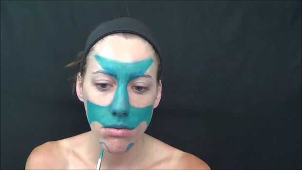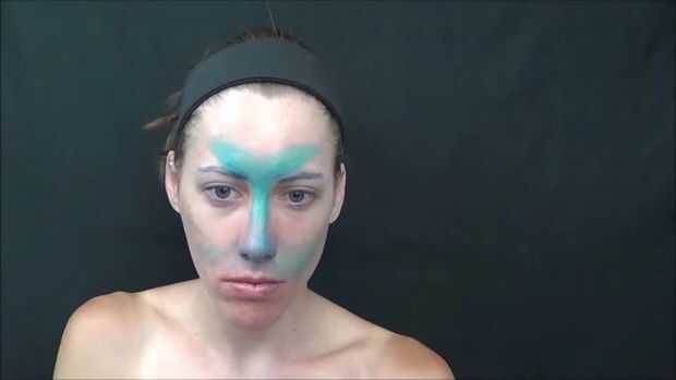 Primero puse teal en mi frente, mi nariz y en la parte inferior de mis mejillas.