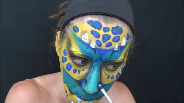 Luz verde azulado agregué destaca a mi nariz, cuernos y sobre los dientes.