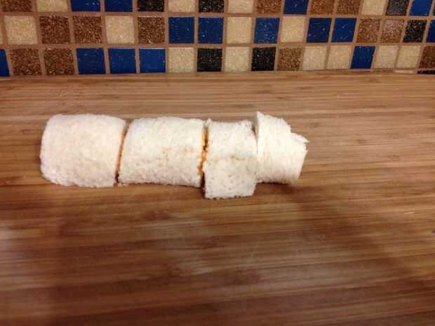 Como se derrite la mantequilla, deberás cortar los pedazos individuales utilizando el cuchillo. Cortar el pan cerca de 1 pulgada o tan separados unos de otros en el pan rollo. Otra vez, usando una tabla de cortar para asegurar un ambiente sanitario.