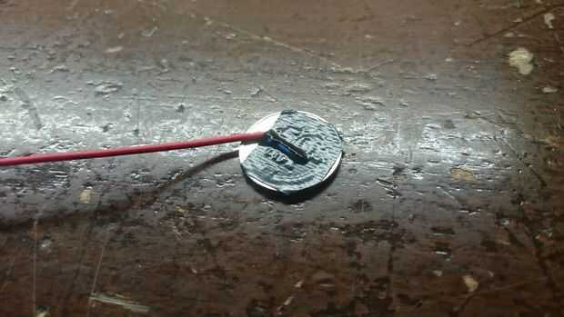 Después de que ha hecho esto, utilice cinta eléctrica para hacer un contacto entre moneda y alambre, se puede soldar también si es posible...