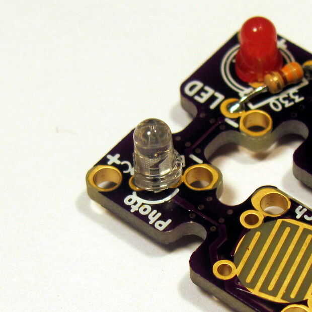 El detector de luz puede ser una fotorresistencia de sulfuro de cadmio, o un transistor de la foto. Me gusta éste porque: