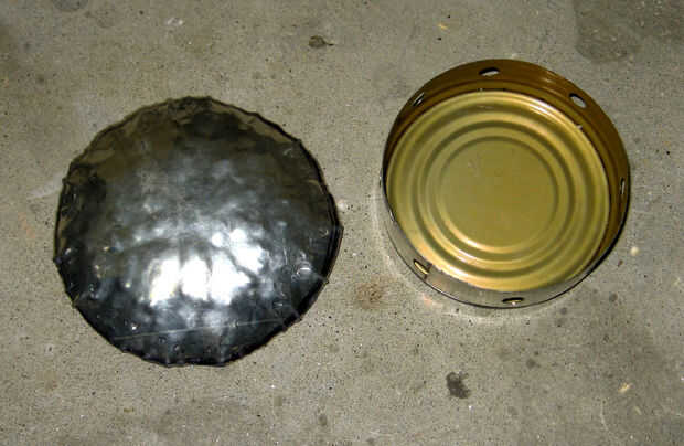 También, quería algo que se asemejaba a tipo de la lámpara vieja de estilo marroquí que había en el colegio. Decidí que intentaría fregadero un pedazo de acero para hacer una tapa abovedada. Este fue mi primer intento de hundimiento de metal, y resultó mejor de lo que pensé que podría. Usé un pedazo cortado de una lata de aceite de oliva porque el metal era un poco más grueso que la sopa puede metal, y porque es suave. No tenía un muñón que se hunde o bloque abovedado, pero pensé que, dada la delgadez del metal y la curva del martillo de bola que estaba usando, podría probablemente salirse con el uso de un viejo pedazo de alfombra.