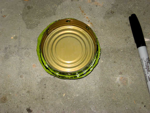 El último paso fue hacer un agujero en el centro de la tapa por lo que podría ser unido a un mango. Utilice un punzón para iniciar el agujero, luego perforar.