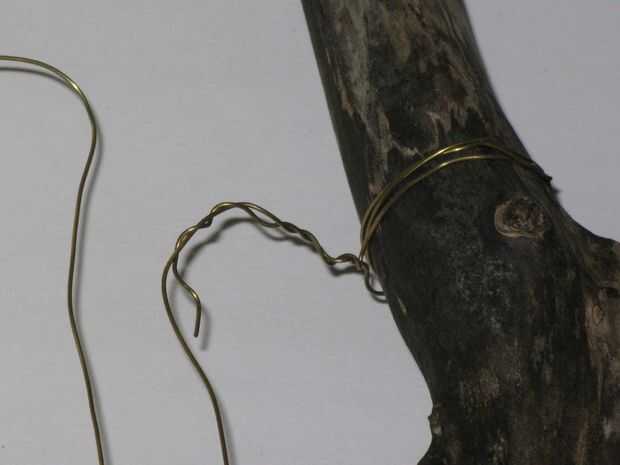 Usted puede hacer una trampa de casi cualquier cosa, alambre de cuerda o cuerda. Mi preferencia es alambre de cobre amarillo, llego mi alambre de cobre amarillo del cuadro colgante de alambre, es bastante fuerte para sostener que es auto en lugar y lo suficientemente suave como para doblar en la forma que necesito. Alambre de cobre amarillo es casi invisible en la selva. Es decir por qué estas fotos se realizaron en el interior.