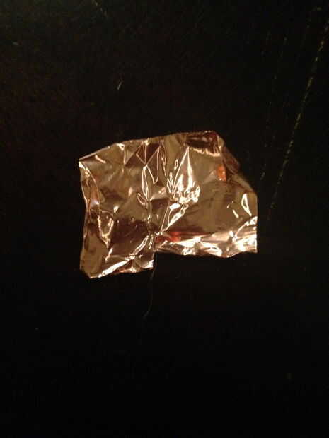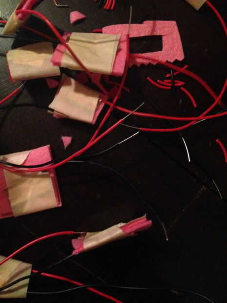5. Colocar 1 trozo de alambre envuelto en cinta de cobre a cada lado de la construcción de fieltro.