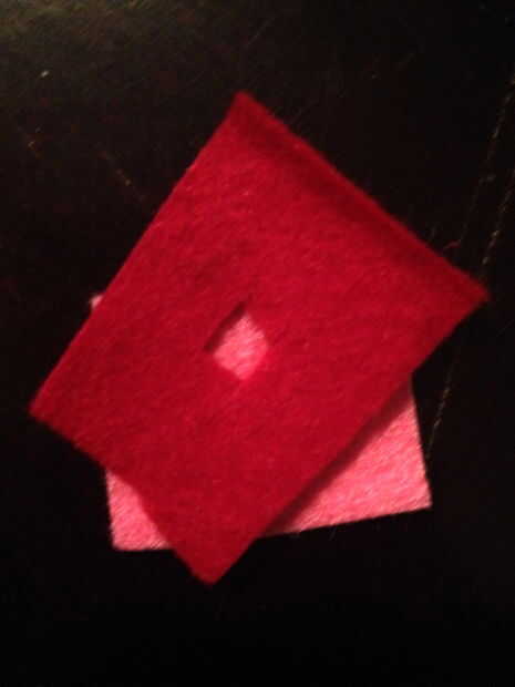 1. corte dos trozos de fieltro en un cuadrado con un pequeño agujero en el centro.