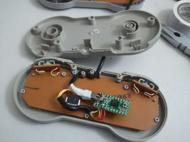 Conecte el mazo de cables al conector de la PCB. Enrolle el cable USB en las muescas que llevan fuera de la carcasa. Ahora, muy suavemente, vuelva a colocar el regulador juntos. Cuidado con cables pinchados y pellizcado Teensies. Tómese su tiempo con esto, me lleva un par de minutos para conseguir todo lo situado apenas a la derecha. Ponga los 5 tornillos que vuelva y tome el sol en la gloria de su trabajo. Ahora tienes un gamepad PS3/USB/teclado que puede ser reprogramado para ser lo que quieras que sea!
