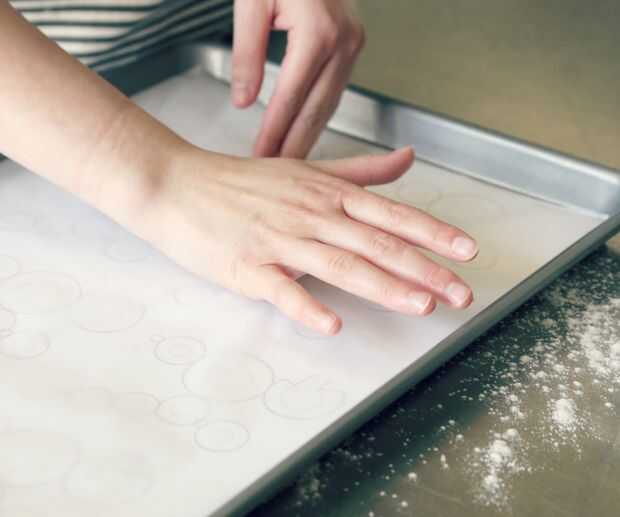 Usted estará haciendo bolitas de masa que están sobre el tamaño de los círculos interiores más delgados en las plantillas. La masa se expandirá como cocineros para hacer crecer el tamaño de las líneas exteriores más gruesos, conexión ('pegado') la bola de caniche las secciones juntos.