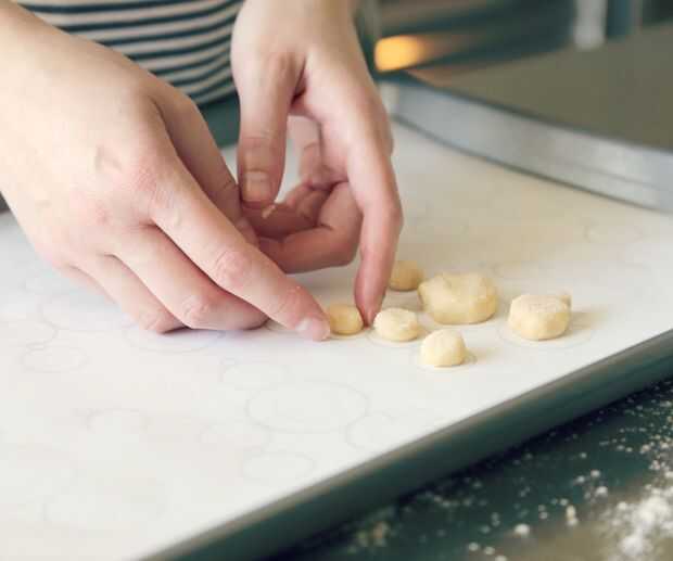 Asegúrese de llenar todos los círculos con bolas de masa para cada SnickerPoodle!