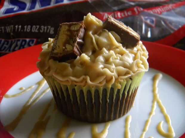 Aliñe los cupcakes helados con salsa de caramelo y decorar con picado
