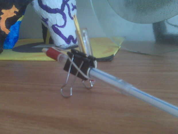 Inserte la paja a través de la parte posterior de la pluma para el barril.