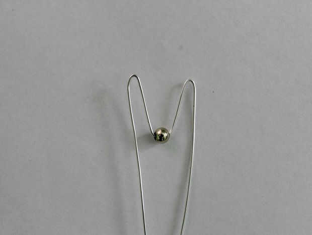 Poner su grano de oro en medio de su cable. Doble el cable hacia arriba como se muestra en la imagen. Entonces usando alicates de joyería, alambre de curva hacia abajo sobre a medio camino encima del alambre a cada lado.