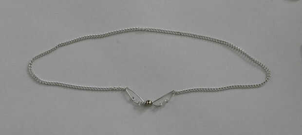 Con su cadena de plata, utilice pinzas de joyería para unir las puntas de las alas en ambos lados. Entonces en medio de la cadena, abra cadena y fije la hebilla. Su collar simple fandom es completa! ¡ Disfrute!