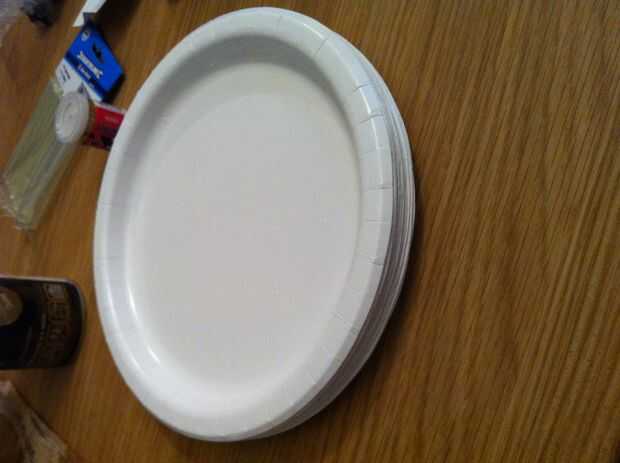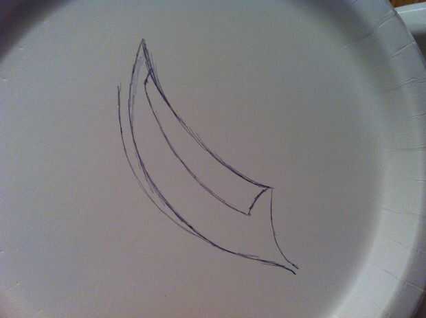 Luego quieren tomar su blanco de la tarjeta (o en mi caso, platos de papel de tarjetas) y dibujar el patrón de sus alas y cortar alrededor de la forma. Si desea dibujar la forma exacta de las alas del soplón en las películas de Harry Potter puedes encontrarlo con una simple búsqueda en Google.