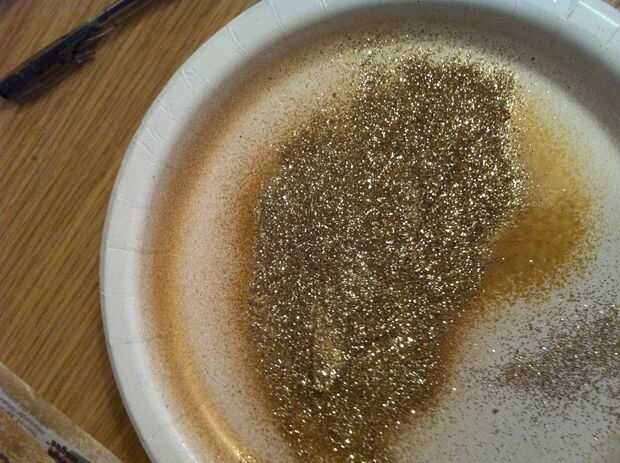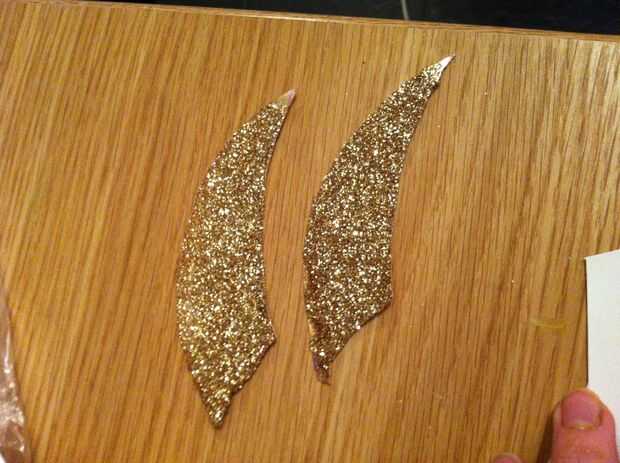 Siguiente tienes pintura de aerosol de la superficie de su ala; Esto actuará como pegamento para el brillo así que asegúrese de agregar el brillo rápidamente antes de que se seque. Repetir este proceso en la parte posterior del ala y luego otra vez la segunda ala de su conjunto.