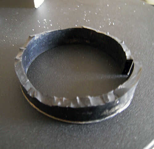 Lugar la goma creo que es el DS-50, como espaciador. Debe encajar muy bien en los hombros gris alrededor del vidrio. Este espaciador protegerá vidrio del estroboscópico de los conectores y tuercas. Una vez más, usted puede utilizar Sugru u otros materiales.