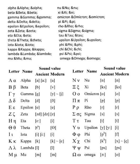 gamma Γ γ "Γ γ" omicron Ο ο "ο ο"