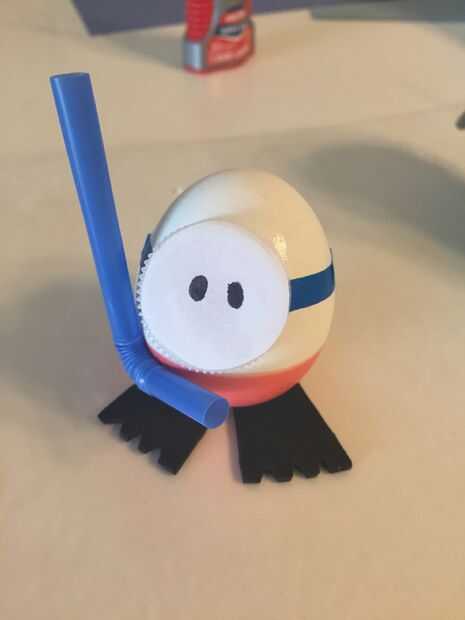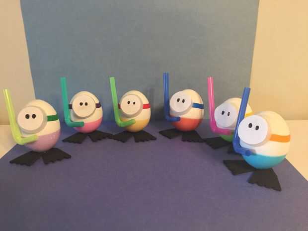 2. Pegar las aletas en la parte inferior del huevo (colores secundarios).