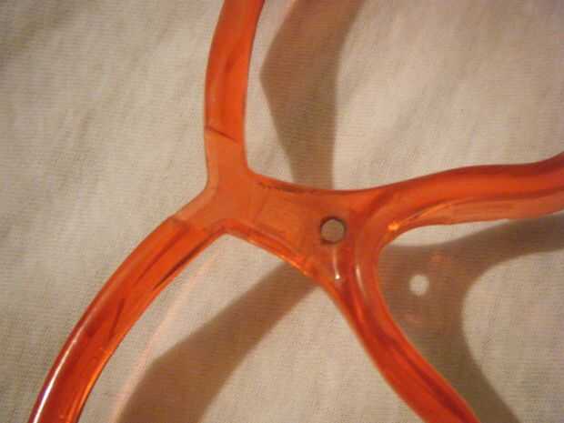 Con una lima de desbaste metal el material de las crestas de modo el montaje de la cámara quedara tan plano como se pudiera para asentar de forma mas segura la pieza y evitar se moviera demasiado debido al uso natural, también se puede ver un pequeño desbaste realizado sobre el ojo izquierdo del marco, este es para crear un poco de espacio al tornillo de la cámara