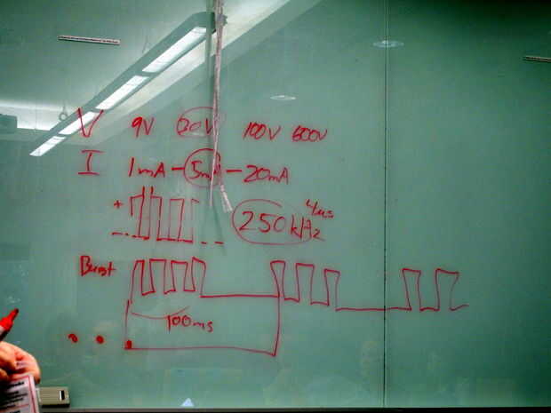 Fosfenos (http://en.wikipedia.org/wiki/Phosphene) son pequeños destellos de luz que se producen cuando obtiene estimula la retina. Puede ocurrir de la estimulación magnética, electrónica o incluso física. En nuestra instalación parecen ocurrir más intensamente cuando la electricidad pasa alrededor de su cabeza cambia abruptamente. Gente haciendo pinza Nota estos derechos cuando iniciar o detener la electricidad. Por encender y apagar la corriente rápidamente podemos conseguir todo tipo de patrones intermitentes locos y efectos visuales.
