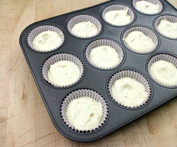Hacer tu receta favorita de pastel blanco y llenar 21 * cupcake tazas 3/4 vías con masa de torta.
