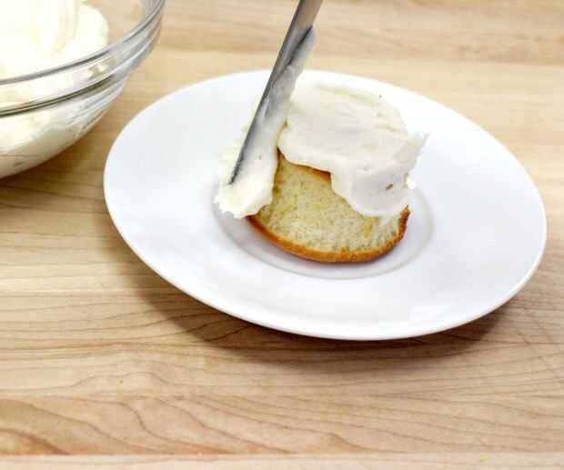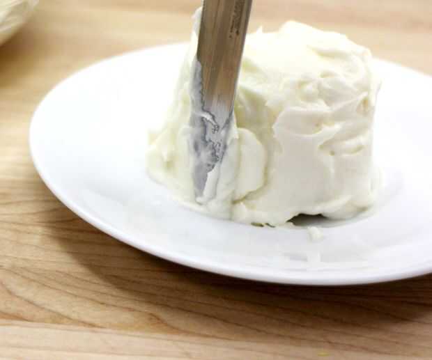 Usando un cuchillo de mantequilla, hielo cada Magdalena con una gruesa capa de la cubierta.