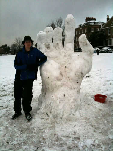 El pulgar experimentó mucho escultor hasta que estaba contento con su forma. Una ventaja del uso de nieve como un medio de la escultura es que puedes añadir a y restar de él tanto como quieras (a diferencia, digamos, un bloque de hielo de la que sólo se puede restar). Lo malo de esto es que es fácil getted empantanado en el perfeccionamiento de los detalles cuando usted no necesita hacer derecha primera vez.