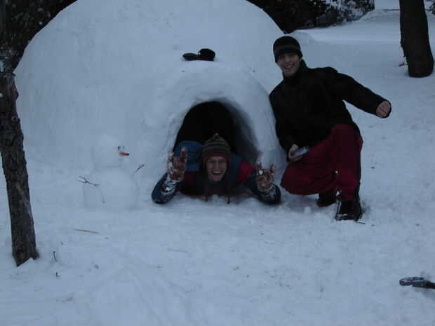 hacer un iglú grande en 3 horas utilizando una máquina removedora de nieve, algunas latas de basura y una lona.Paso 1: Hacer un montón de botes de basura obtener sobre 5 botes de basura con tapas juntos y atar un lazo de cuerda en algunas de las lata
