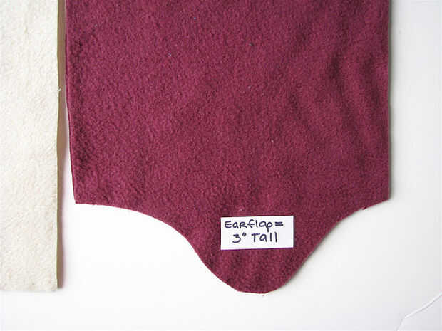 Los 3 extra añadido a la altura del sombrero era un sombrero. A partir de 3 pulgadas desde el borde inferior de uno de los lados largos, corte en el sombrero, curva hacia abajo en el borde inferior y luego, terminando 3 de la parte inferior en el otro lado. Usted notará en la fotografía que corté orejeras ligeramente descentrada. Lleve orejeras lejos del borde delantero de una pulgada o dos, habrá más espacio para la cara en la parte delantera del sombrero.  Repita para las otras partes, cuidando de trazar la curva exacta de hechos de la primera orejera.