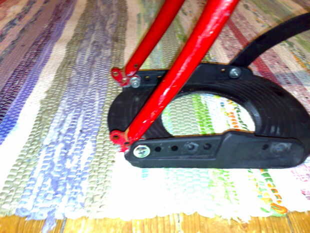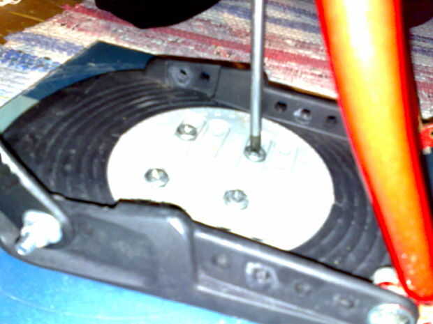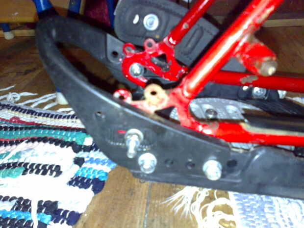 Esto se hace usando los pernos y tuercas que originalmente sujetan las correas de la fijación del snowbord. Asegúrese que las tuercas de nylon fijación por lo que ellos no vienen en el "aire" =)