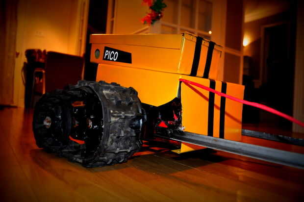 ACTUALIZACIÓN: Se pone bastante duro volver... Pude tomar un par de viajes antes de tener una avería importante. Una conexión se rompió en el interruptor de la batería. Yo con éxito soldarlo nuevo sin embargo no estoy dispuesto a riesgo de dañar aún más mi batería de LiPo de $ 500. Realmente no puedo añadir ninguna suspensión para amortiguar los golpes, por lo que he elegido para retirarse el Pico por ahora. Sólo puedo adivinar la velocidad a 10k/h y gama a 10km (1 hora) dada cuánto dura la batería en mi motor ebike semejantemente accionado. Tuve una explosión edificio así que no hay absolutamente ningún arrepentimiento.