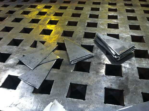 Cortarse un patrón teselar hacia fuera en una tira de acero y rebanar con su método de elección. Usé la cizalla hidráulica en mi barrio makerspace, pero salto cizalla y plasma cortador finas alternativas.