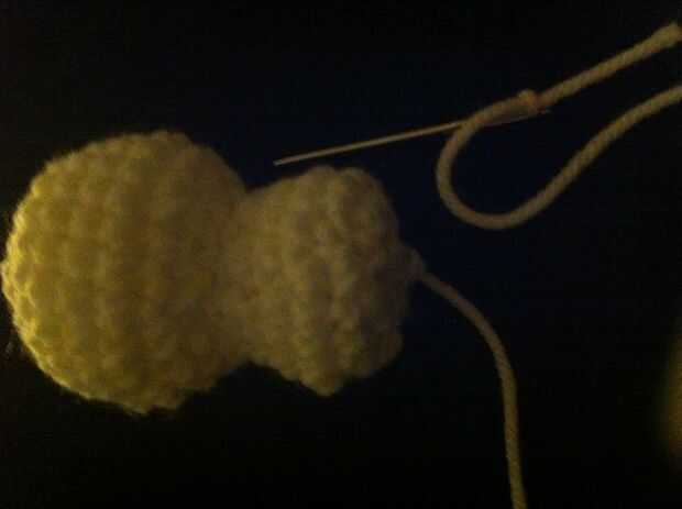Ahora se amarra con un trozo largo de hilo y cose el extremo con su aguja de hilo para cerrar para arriba.