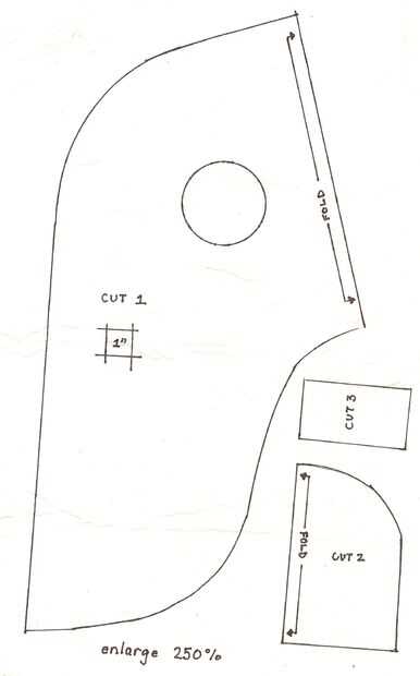 Como alternativa, puede imprimir dos de cada pieza marcada "plegar" y con cinta adhesiva, dándole una pieza completa que puede colocar sobre una capa de tela.