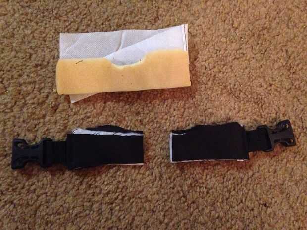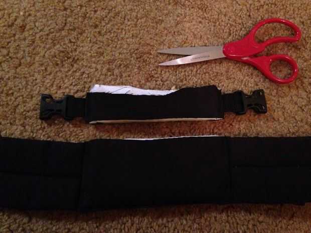 Después de quitar el plástico, debe ser capaz de cortar la cintura cinturón todo recto, mientras que también rescatar las correas y hebillas directamente sobre ella.