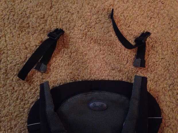Si usted está interesado en la fabricación de una campana que se sujeta en las hebillas de la correa para el hombro en este modelo de Snugli, puede rescatar estas piezas conector del cuerpo de Snugli original.