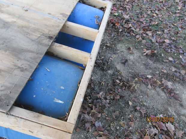 Me mide 3 barriles de extremo a extremo. Era 104,5 pulgadas probablemente estándar. Añadido 3 pulgadas para tener en cuenta los dos extremos 2x4s y me salió con 107.5. Se necesita 4 piezas esta longitud, 2 en el bastidor principal y 2 para las llaves de lado. También necesita usted terminará piezas. Quiero mantener el ancho final 4 pies para no tener que cortar la madera contrachapada. Tan en su cuenta de medición para los lados (3) de piezas y que restar 48 en. Debe ser 45 en. Necesitarás dos piezas esta longitud. También necesitarás dos llaves internos, estos serán la longitud de los 3 barriles. Se requieren dos de estos.