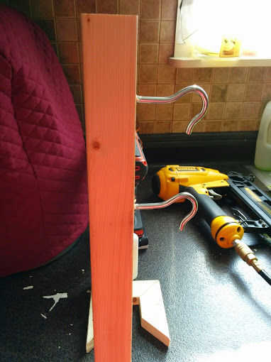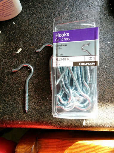 También pongo el gancho en el 2 x 2 que sabía que sería difícil una vez que se instaló. Comencé a mano y usa un par de pinzas grandes para terminar, estoy seguro un orificio hubiera enojado más fácil pero, no sólo soy barato soy un poco perezoso de alguna extraña manera y sinceramente no pensar en el momento.