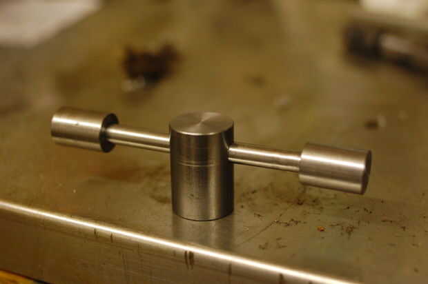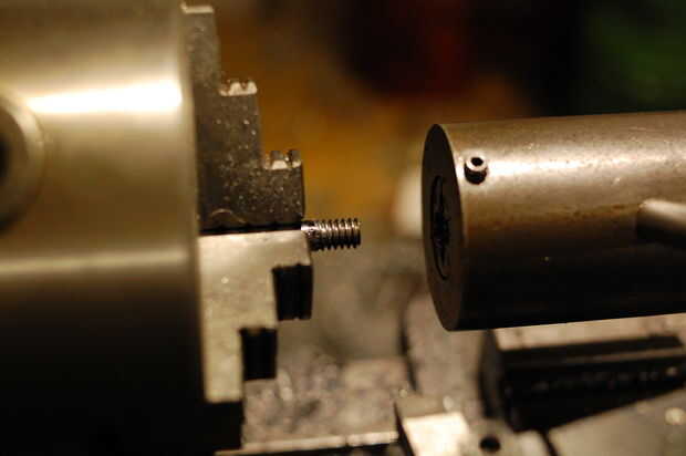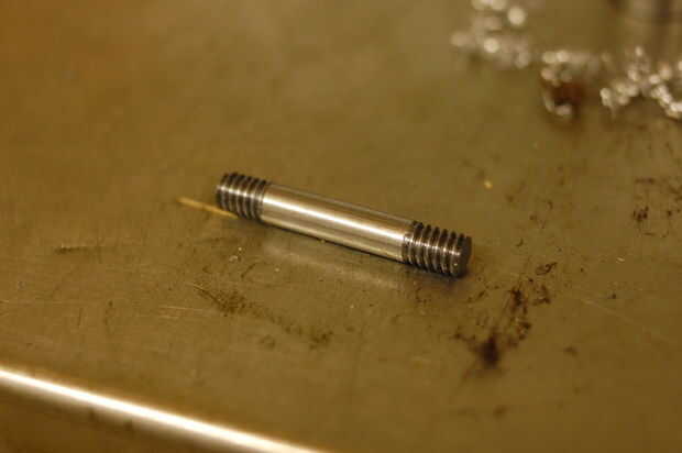Finalmente se hicieron los brazos cortando un hilo en los extremos de alguna barra de 1/4". Usé un portamatriz de cabezal móvil para esto: