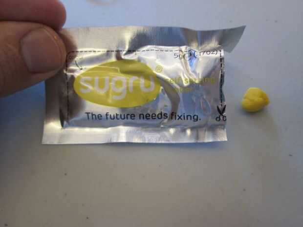 "Sugru" (sugru.com) es un goo de silicona secado al aire inventado por el artista irlandés y empresaria Jane ni Dhulchaointigh y un equipo de científicos de los materiales.Sugru comienza ligeramente pegajosa, como masilla tonta, pero después de
