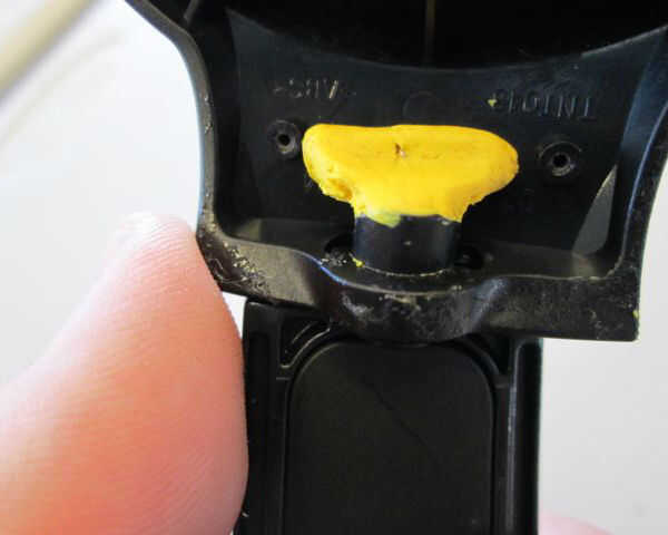 Añadir un trozo del tamaño de guisante de sugru y cubrir totalmente el alambre con la masa amarilla.