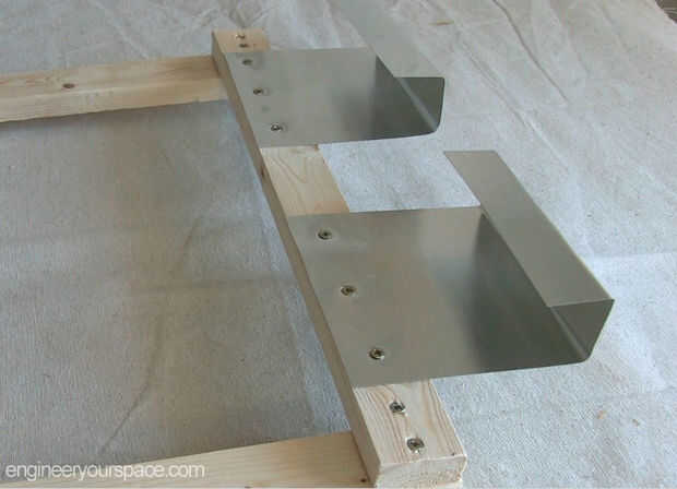Hice un organizador de herramientas para colgar en la parte posterior de una puerta del armario, y no pude encontrar que ninguna sobre los ganchos de la puerta fina lo suficiente como para trabajar con el espacio estrecho entre la parte superior de la puerta y el marco de la puerta. ¿Mi solución? Hacer usar 5 "x 7" aluminio paso intermitente hojas!