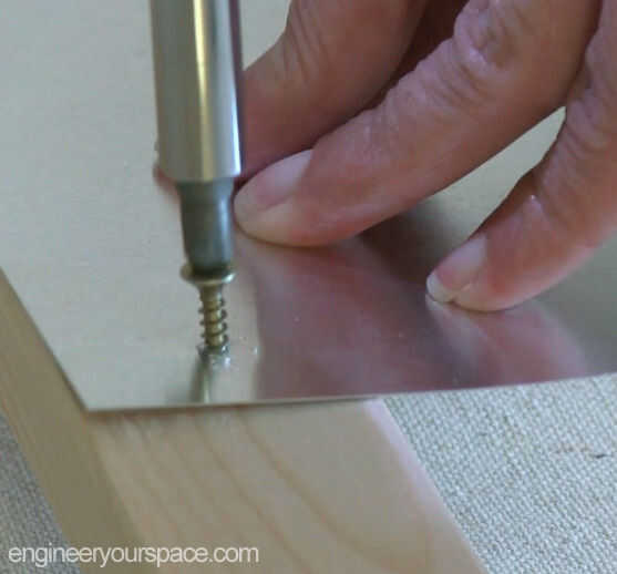 Utilicé tornillos múltiples materiales de SPAX para fijar los ganchos a mi organizador de puerta. Estos tornillos con metal y madera y no requieren ninguna perforación previa pero haciendo una pequeña chuleta con un clavo antes de perforación ayuda a evitar que el tornillo se deslicen.