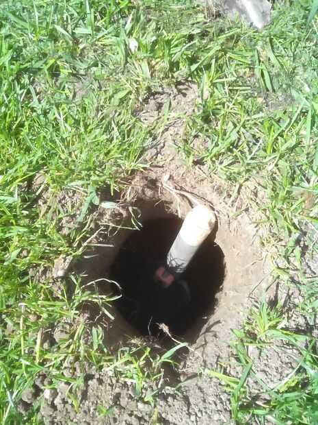 Primero medido y marcado los puntos fueron a cavar. La excavación se realizó con una pequeña pala, para que la parte superior del agujero podría quedar pequeña. Esto es por razones de seguridad, por lo que la parte superior del concreto tiene el mismo tamaño que la viga que está en él. De esta manera es prácticamente imposible que el niño golpeará su cabeza sobre el hormigón al caer. La parte superior de los orificios es de unos 20 x 20 cm (no capaces de hacer más pequeño, pero en el paso donde se vierte el concreto voy a explicar cómo hacer el hormigón del mismo tamaño que la viga de madera). La profundidad del agujero es de unos 50cm. El agujero es piramid formado, lo que significa que la parte inferior es más ancha que la parte superior del orificio (aproximadamente 40 x 40 cm). Como esto es menos probable que el patio se hundirá en la tierra, debido a la gran área que transporta. También reduce la posibilidad de que el patio de vuelco, debido al peso adicional del concreto y el hecho de que un lote de tierra debe ser movido sacar el hormigón.