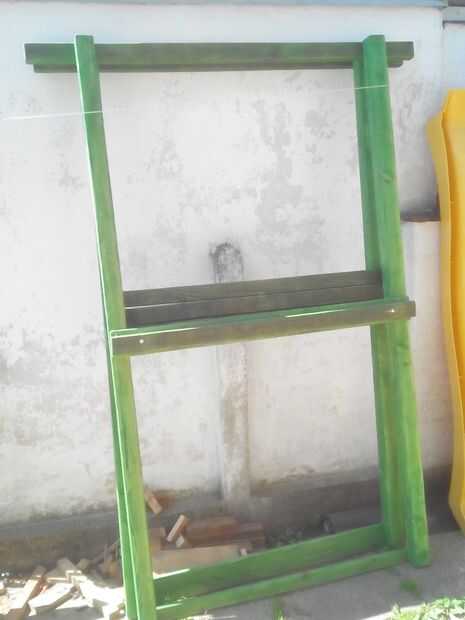 El marco consiste en una parte delantera y trasera conectadas con vigas. La forma más fácil de construcción debe primero construir el frente y parte posterior por separado en un subterráneo plano (mientras se establecen en el suelo). Cuando se construyen los dos cuadros, puede mover hasta el lugar donde los agujeros cavados y conectados con las vigas de conexión.