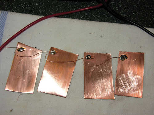 4. Corte una longitud de alambre de cobre sobre dos veces la longitud de los electrodos combinados