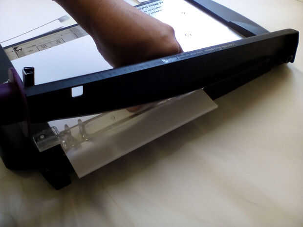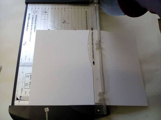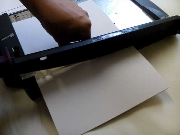 Una vez que ha hecho los sobres, es hora de hacer páginas para el libro. Cortar las páginas del mismo tamaño que las tapas de cartulina blanca. El número de páginas dependerá del número de invitados que se invita a - usé 30 hojas de cartulina con 2 sobres por página (yo escogí tener sobres en solamente un lado de cada hoja).